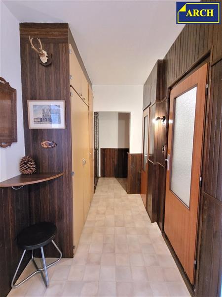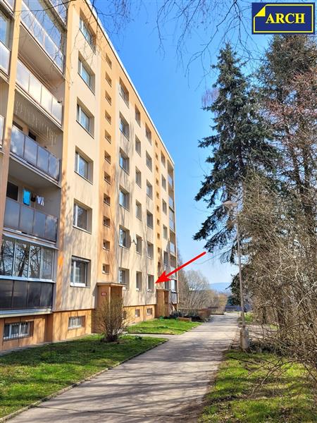Byt 2+1 (56 m²) bez balkonu v Liberci VI-Rochlicích, na okraji sídliště Gagarinova. Jedná se o zateplený panelový dům, postavený na konci 80.let 20.stol. Byt je umístěný ve zvýšeném přízemí. Obývací pokoj je orientovaný na jih - s výhledem do zeleně. Kuchyň a ložnice jsou orientované na sever - s výhledem na ulici za domem a na další panelový dům. Budova byla postavena asi v r. 1990. Přibližně před 20ti lety bylo provedeno zateplení + plastová okna. Byt má betonové jádro. Dispozice: - obývací pokoj (18,0m²), kuchyň (10,5m²), předsíň (8,3m²), šatna (2,4m²), ložnice (12,4m²), koupelna (3,3m²) a WC (1,0m²). V kuchyni je el. sporák, digestoř, starší kuch. linka se dřezem a obkladem a také myčka. Koupelna je vybavená vanou a umývadlem, kompletně obložená. WC je umístěno v samostatné místnosti bez obkladů. V pokojích jsou provedeny plovoucí podlahy, v ostatních místnostech je položeno PVC. Dveře jsou dřevěné hladké plné a prosklené, osazené do původních ocel. zárubní. V předsíni a v šatně jsou vestavěné šatní skříně. Celá předsíň je ve stylu "retro" - s tmavým obkladem z dřevěných palubek. Stávající vybavení je použitelné, ale celková rekonstrukce bytu bude potřebná. V domě je ústřední topení, napojené na rozvody tepla z městské teplárny. Měsíční zálohy na služby odhadem 3.500 až 4.000Kč + fond 960Kč/měs. + poplatky za správu apod. 480Kč/měs. Parkování je možné na ulici za domem (před domem je pouze chodník pro pěší). U štítu domu (20m od vchodu) je dětské pískoviště. Větší dětské hřiště je vzdálené cca 160m. Vzdálenost k MŠ "Hvězdička" 500m, ZŠ "U Školy" 800m.