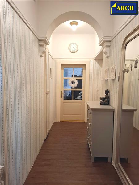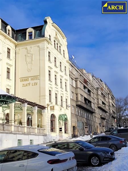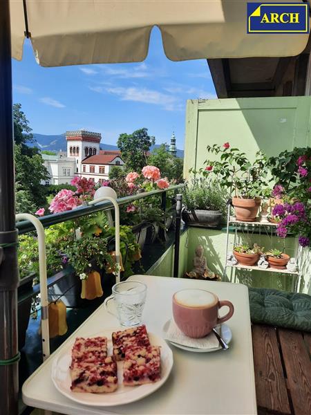 Byt 3+1 (110 m²) s lodžií (3,8 m²) ve zděném historickém domě (postaveném kolem r. 1920) v centru Liberce, s krásným výhledem do parku Clam-Gallasů. Dům je postavený v Gutenbergově ul. vedle hotelu Zlatý lev, tzn. v centru města (350m od radnice) a přitom v klidném prostředí. Gutenbergova ul. je slepá - je v ní pouze uzavřené parkoviště hotelu a parkovací stání pro rezidenty. Výhled z lodžie (i ze všech 3 pokojů) je nejen na park, ale také na liberecký zámek, za kterým se schovává Ještěd. Na poslední fotografii uvedené v inzerátu je výhled z terasy přístupné z půdních prostor domu. Dispozice bytu: 1.pokoj 20,8m², obýv. pokoj 28,3m² + lodžie 3,8m², 3.pokoj 18,1m², kuchyň s jídelnou 23,6m², koupelna 8,8m², předsíň 10,6m² a komora 1,55m². Byt je umístěný ve 2.patře v domě s výtahem. Všechny pokoje jsou orientované na jih - s výhledem do parku. Kuchyň a koupelna mají okna na sever - do malého málo udržovaného dvora (okna do dvora jsou matná - neprůhledná). Kuchyňská linka má 3 části: 1.část s el. indukční varnou deskou, porcelánovým dvoudřezem a myčkou, 2.část s několika skříňkami, horkovzdušnou troubou a mikrovlnnou troubou. 3.část tvoří velký servírovací stůl. Všechny 3 části mají pracovní desky i obklady z růžové španělské žuly. Koupelna je vybavená rohovou vanou, umývadlem a sprchovým koutem, který je obložený zelenou mozaikou. Cestovatelé možná ocení, že umývadlo a dekory jsou ručně vyráběné, dovezené z Mexika. Za polopříčkou (v prostoru za pračkou) je umístěné závěsné WC - kompletně obložené běžným obkladem. Podlahy v kuchyni, v předsíni a ve 2 pokojích jsou plovoucí. V posledním pokoji je položeno PVC, v koupelně je keramická dlažba. Dveře jsou většinou původní dřevěné, z masivu, s obložkovými zárubněmi. Okna do parku jsou původní dřevěná, okna do dvora jsou nová plastová, s matnými skly. V domě je proveden rozvod ústředního topení z domovní plynové kotelny. Ohřev teplé užitkové vody zajišťuje plynová karma. K bytu přísluší sklepní kóje 7,1m² (kterou současný vlastník nevyužívá) a užívání části půdního prostoru.
